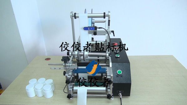 生活中我們經(jīng)常會(huì)見到貼這各種標(biāo)簽的白色塑料小藥瓶,今天就來介紹這些白色塑料小藥瓶上面的標(biāo)簽是怎么貼上去的,先來看看這臺(tái)半自動(dòng)塑料圓瓶貼標(biāo)機(jī)(又稱半自動(dòng)圓瓶貼標(biāo)機(jī))的圖片吧。