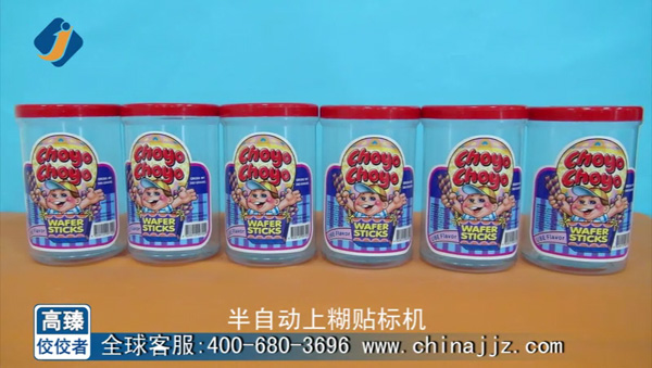 一到超市總是會到副食區去欣賞下那些糖果蜜餞的罐子上面貼的花花綠綠的標簽,那么這些漂亮的標簽是用什么貼上去的呢?下面就給大家介紹下這臺紅蓋圓罐貼標機(半自動上糊貼標機)。首先,我們來一起欣賞這臺紅蓋圓罐貼標機,如圖: