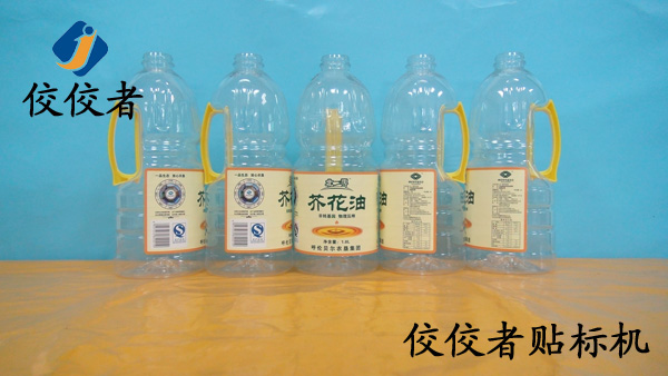 全自動芥花油瓶貼標機的工作原理和專用貼標機系列下的全自動紅酒貼標機是比較相似的。和其他圓瓶貼 標機一樣,貼完標簽需要覆標使標簽與瓶子更貼合,下面我們一起來看看全自動芥花油瓶貼標機的貼標樣品吧。