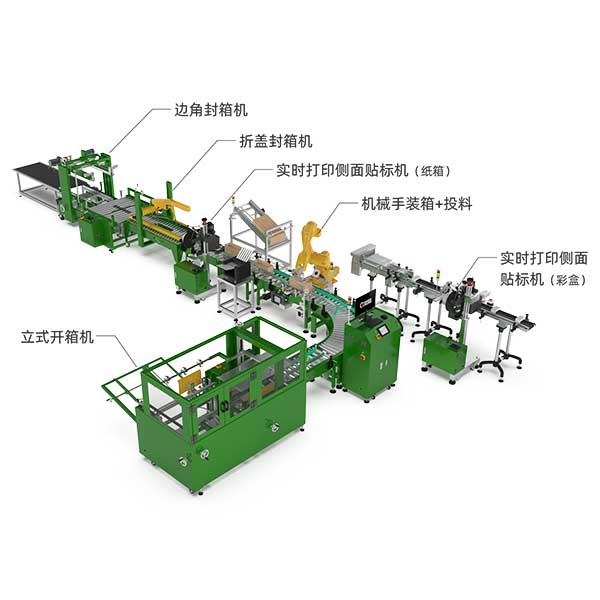 2. 裝箱:在開箱完成后,自動化系統將產品通過輸送帶送入紙箱內,確保裝箱過程高效且精確。