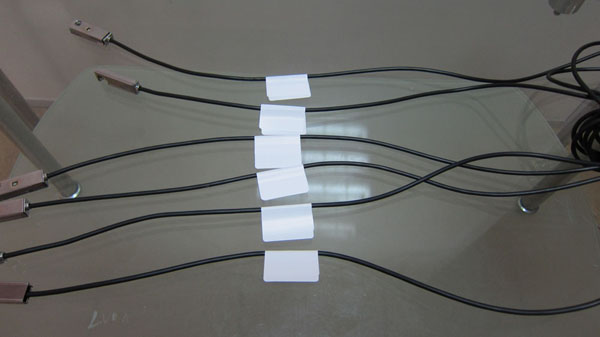 上圖:樣品六.上圖中的這個圖片是在研發過程中,對三角插頭進行多標簽貼標的樣品圖片.
