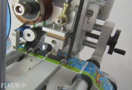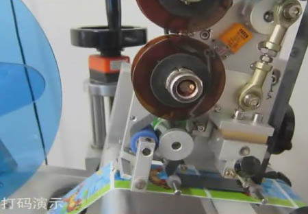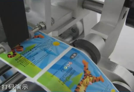 對產品一邊進行貼標,一邊進行打印文字。已經是一個很容易就能實現的功能了。實現這個即時打印功能的東東,叫打碼機。一般的標準貼標設備上都是可以進行選配這個打碼機的。也就是說,幾乎所有的標準設備都可以進行即時打印功能。我公司有一款典型的即時打印貼標設備:全自動臥式圓瓶貼標機
