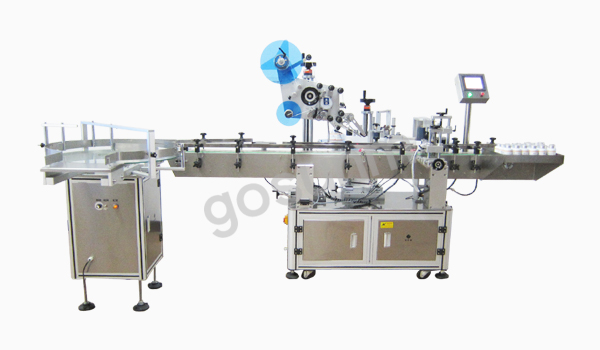 全自動頂部側面貼標機+自動理瓶-兩種話梅瓶子標簽